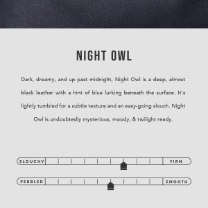 | Color | Bacalar, Beetle, Black, Chestnut, Cobalt, Coldbrew, Dragon Bone, Night Owl, Nutmeg, Plum, Sunflower, Supernova |